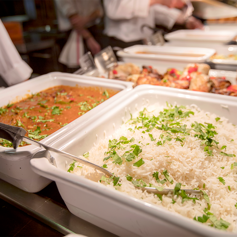 Our spacious Bar Lounge and restaurant offer a relaxed, contemporary setting for seated group dining, drinks receptions or informal buffets. Our chefs are happy to tailor menus to your preferences, including Indian, Western or fusion cuisine, and we cater for all dietary requirements.